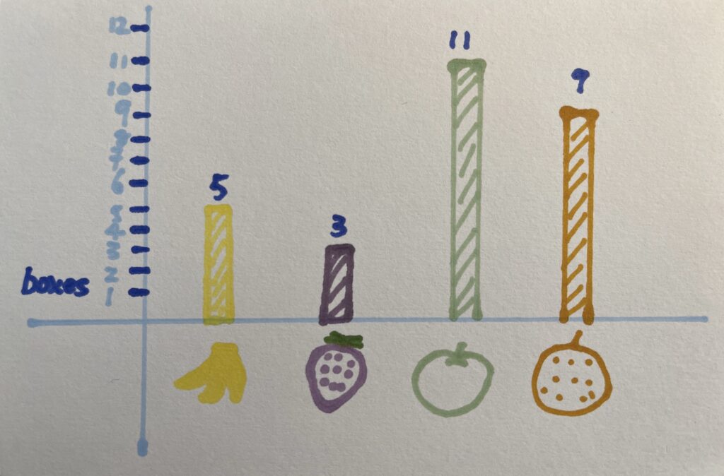 Assessment of Learning: by the end of class, students should be able to design their own graphs or charts based on their interested topic. In the next class, the candidate should be able to share their work with others. Students can choose to draw on paper or any platform from a digital device. Students should display the contrast between each data by giving different numbers.